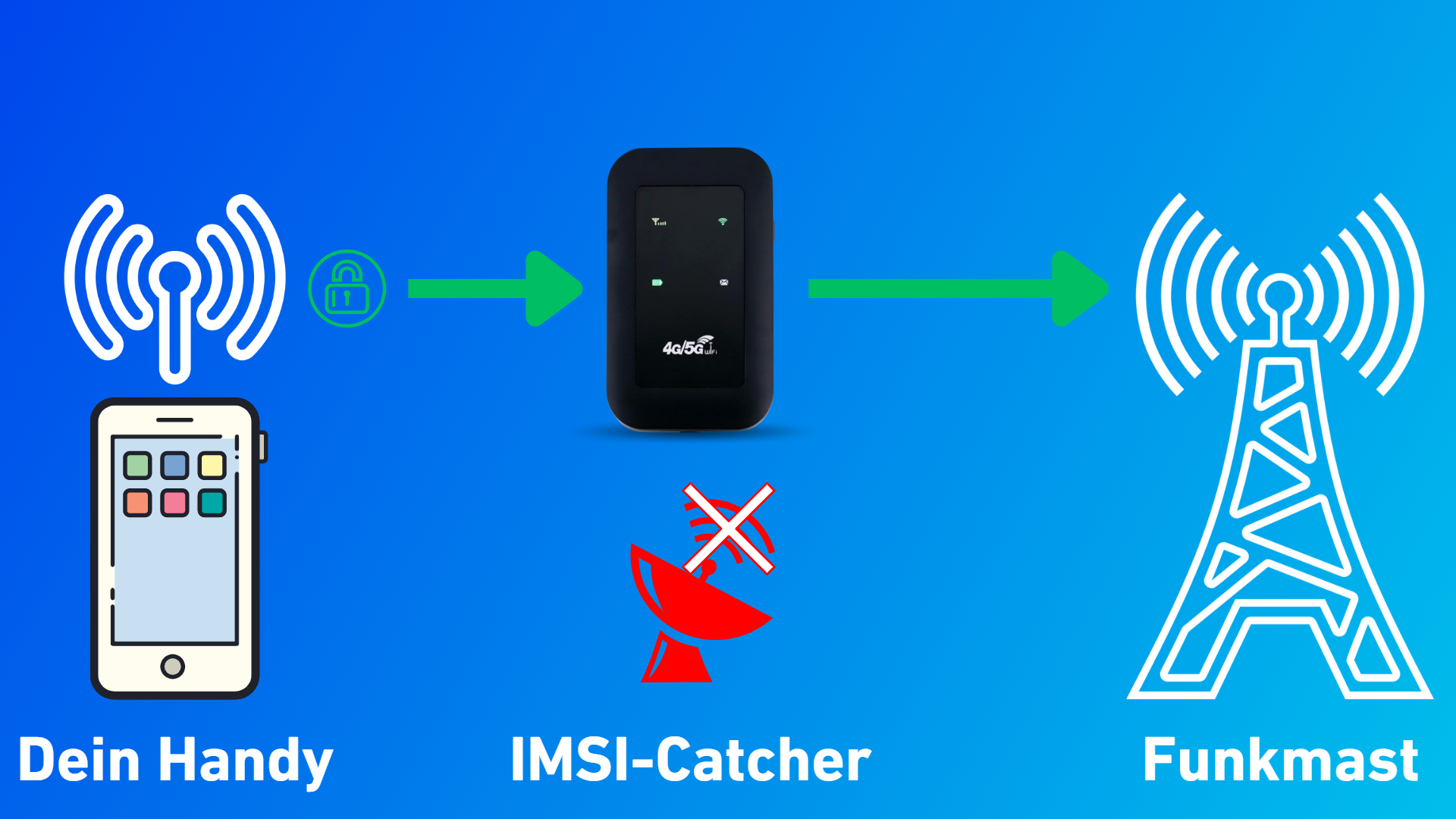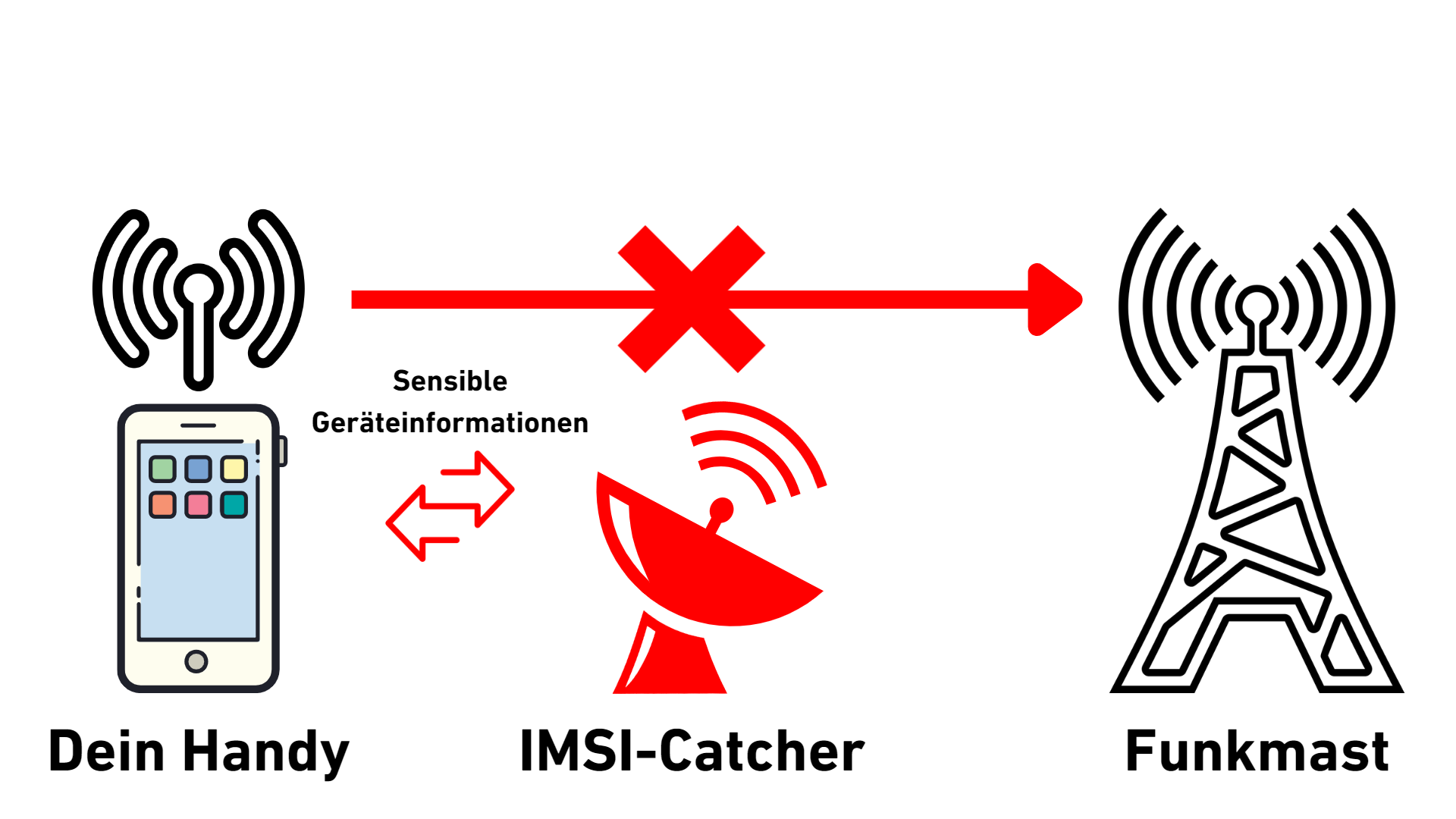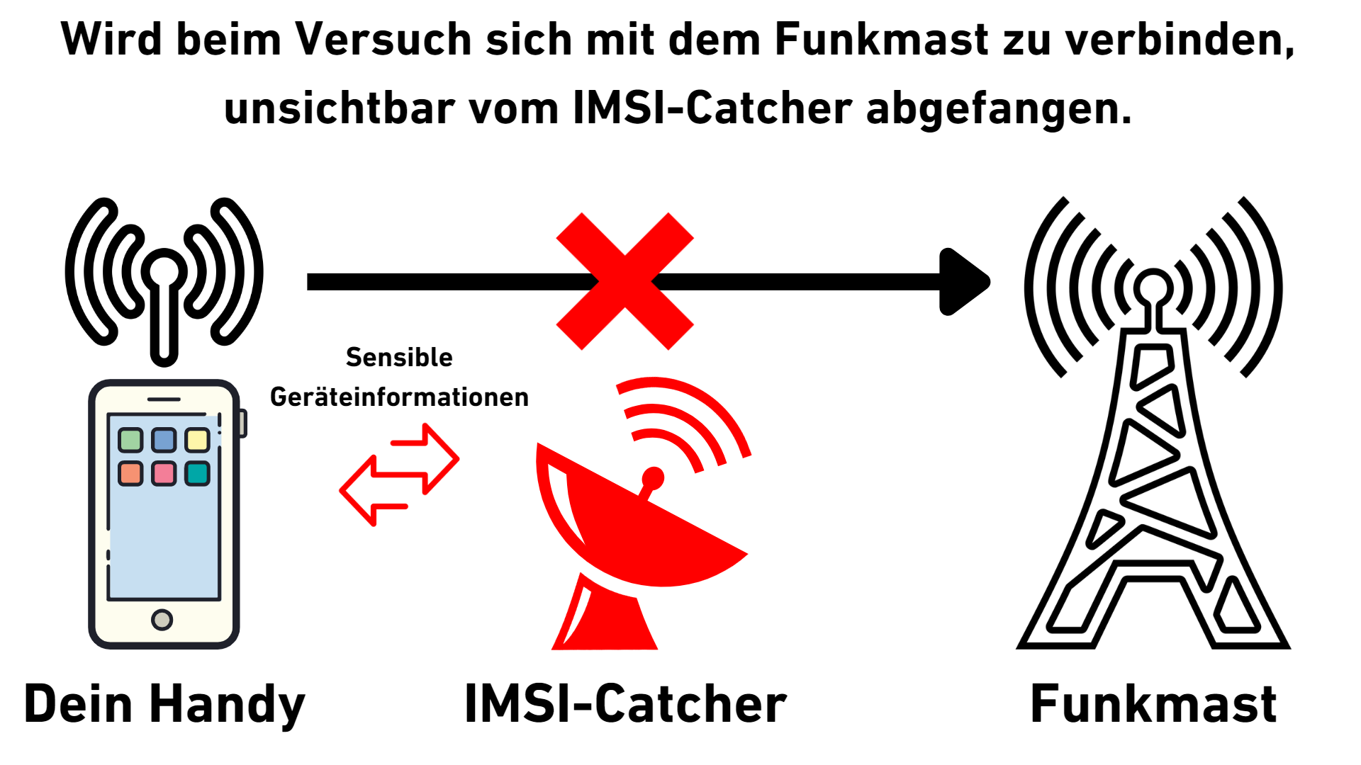 Einmal in die Fänge eines IMSI-Catchers geraten, ist die Anonymität Deines Handys gefährdet. Sie erfassen heimlich IMSI- und IMEI-Nummern und legen damit die Identität der Geräte und ihrer Besitzer offen.